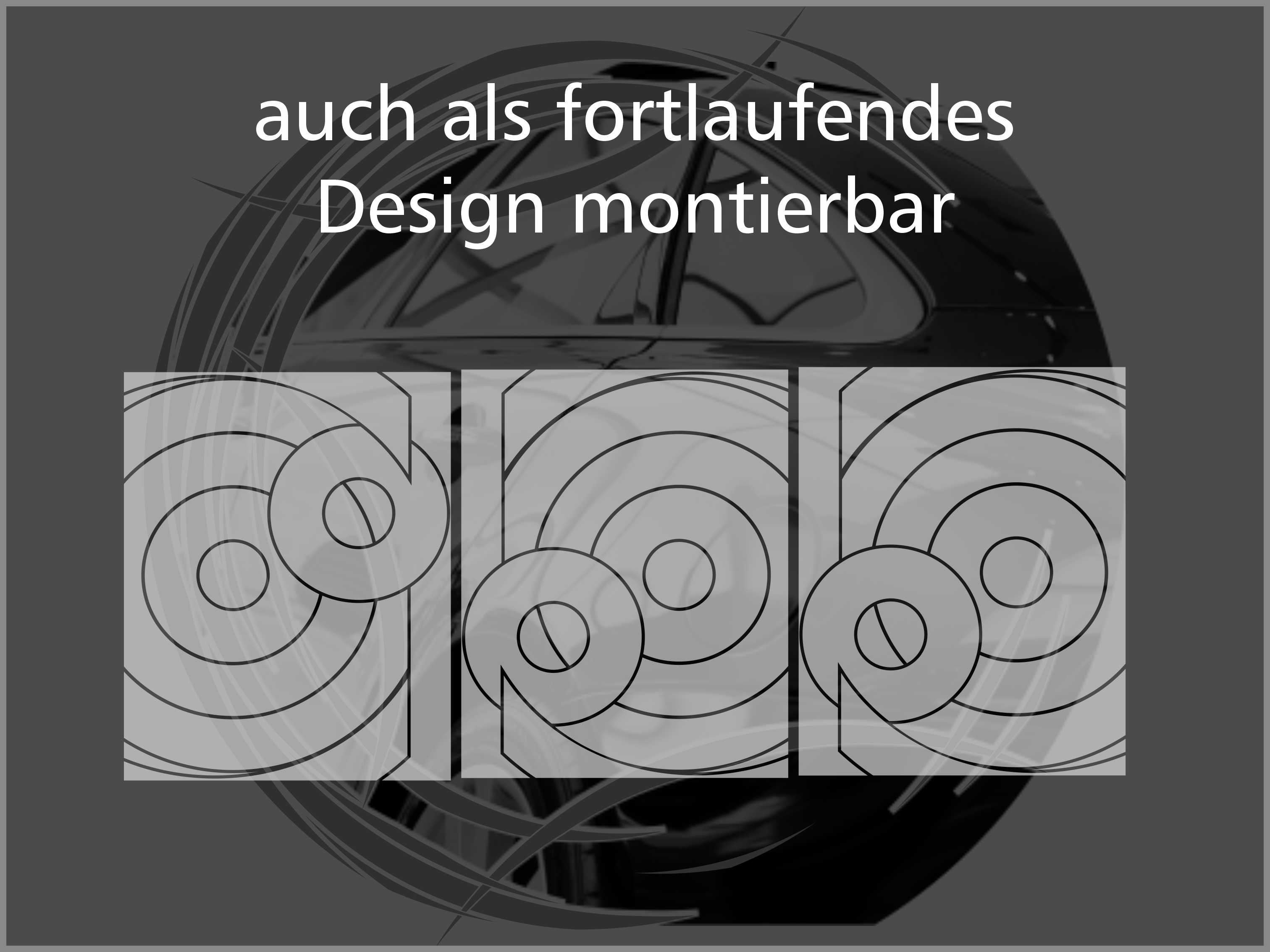 - Design auch fortlaufend ansetzbar (weitere Mengen können also auch auf breitere Flächen montiert werden)