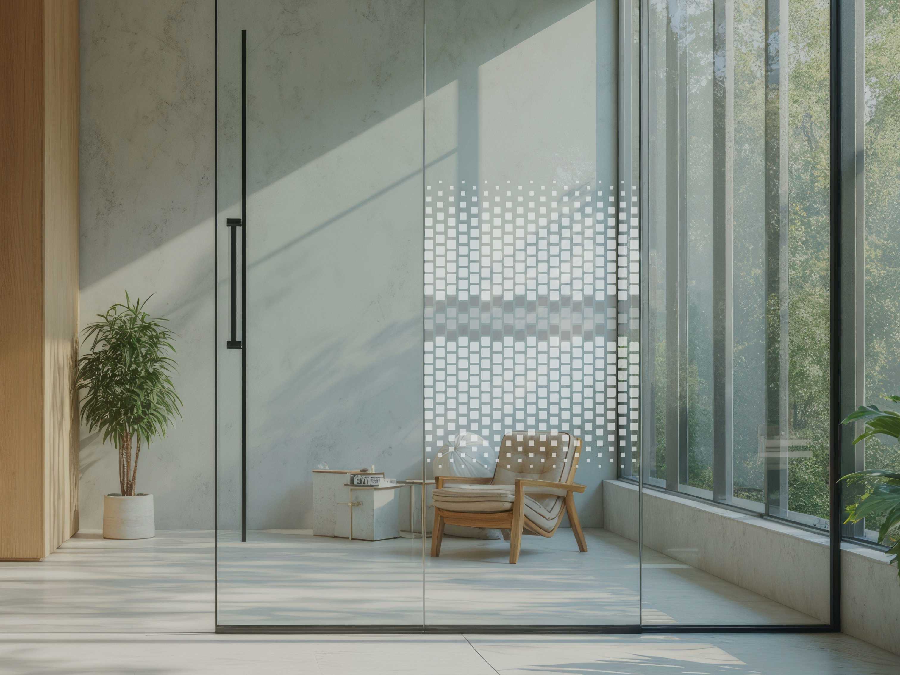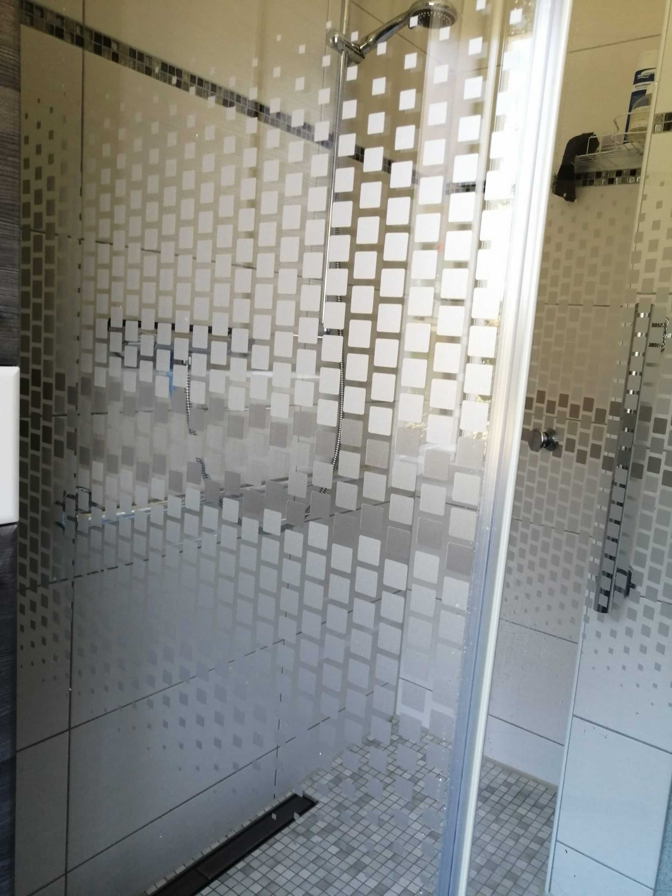 - edle Glasdekorfolie - wirkt wie satiniertes (geätztes) Glas, mittlere Teile mit LATEX-Druck koloriert